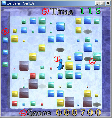 水星人(主人公キャラ)を操ってアイスブロックを多く食べる事が目的です。